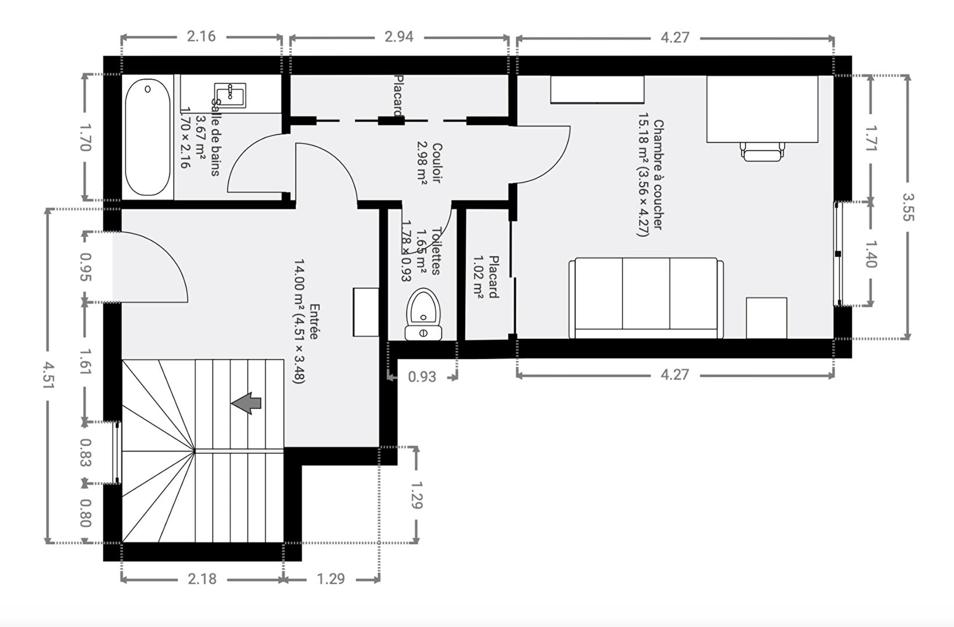 Au 1er niveau, un hall d'entrée desservant une chambre avec salle de bains et wc offrant un espace isolé, idéal pour un adolescent en recherche d'indépendance.